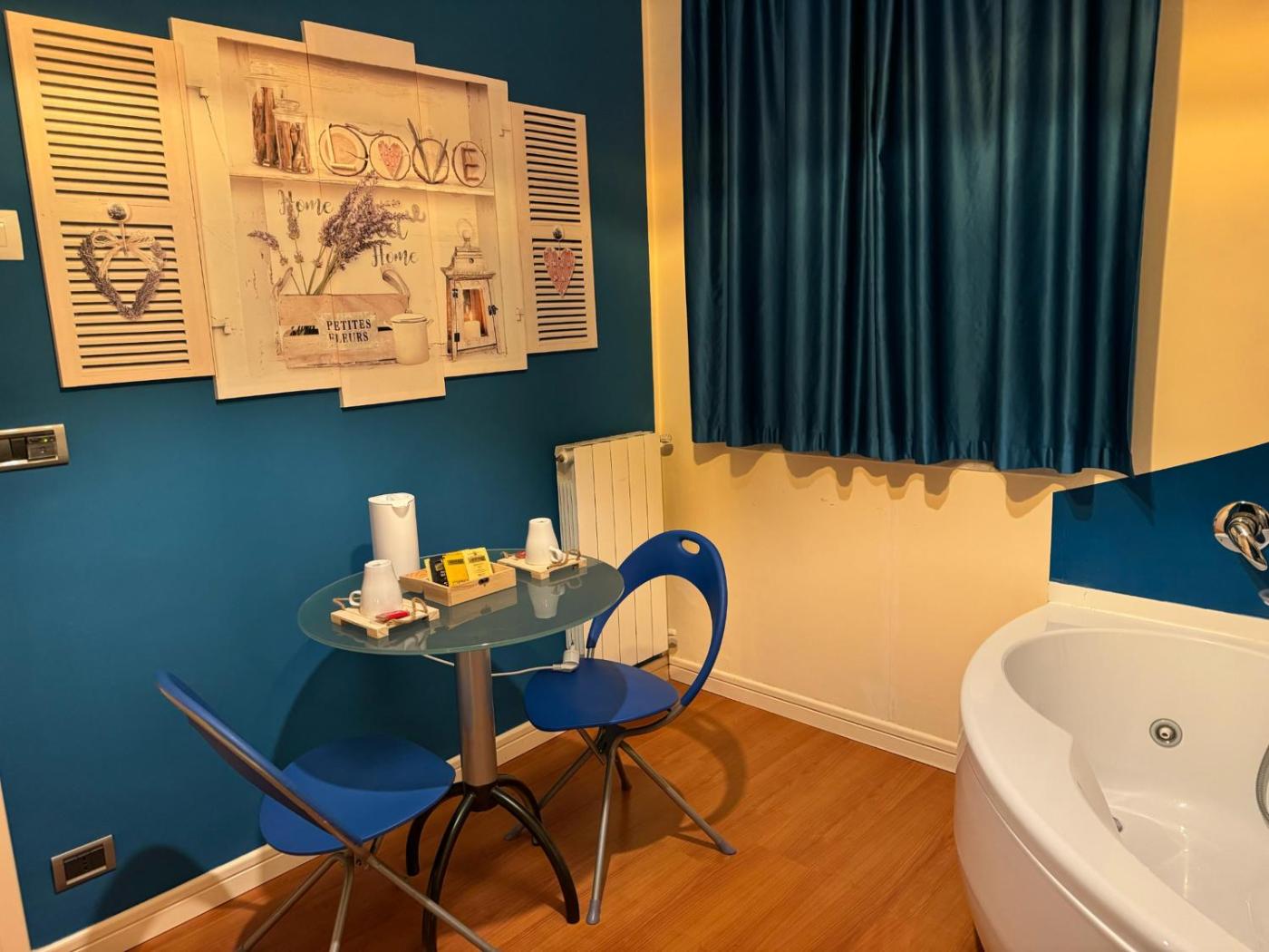 Camera Matrimoniale con Vasca Idromassaggio. This double room features a hot tub. Featuring free toiletries and bathrobes, this double room includes a private bathroom with a bath, a shower and a bidet. The spacious air-conditioned double room features a flat-screen TV with cable channels, soundproof walls, a minibar, a tea and coffee maker as well as city views. The unit has 1 bed. ;