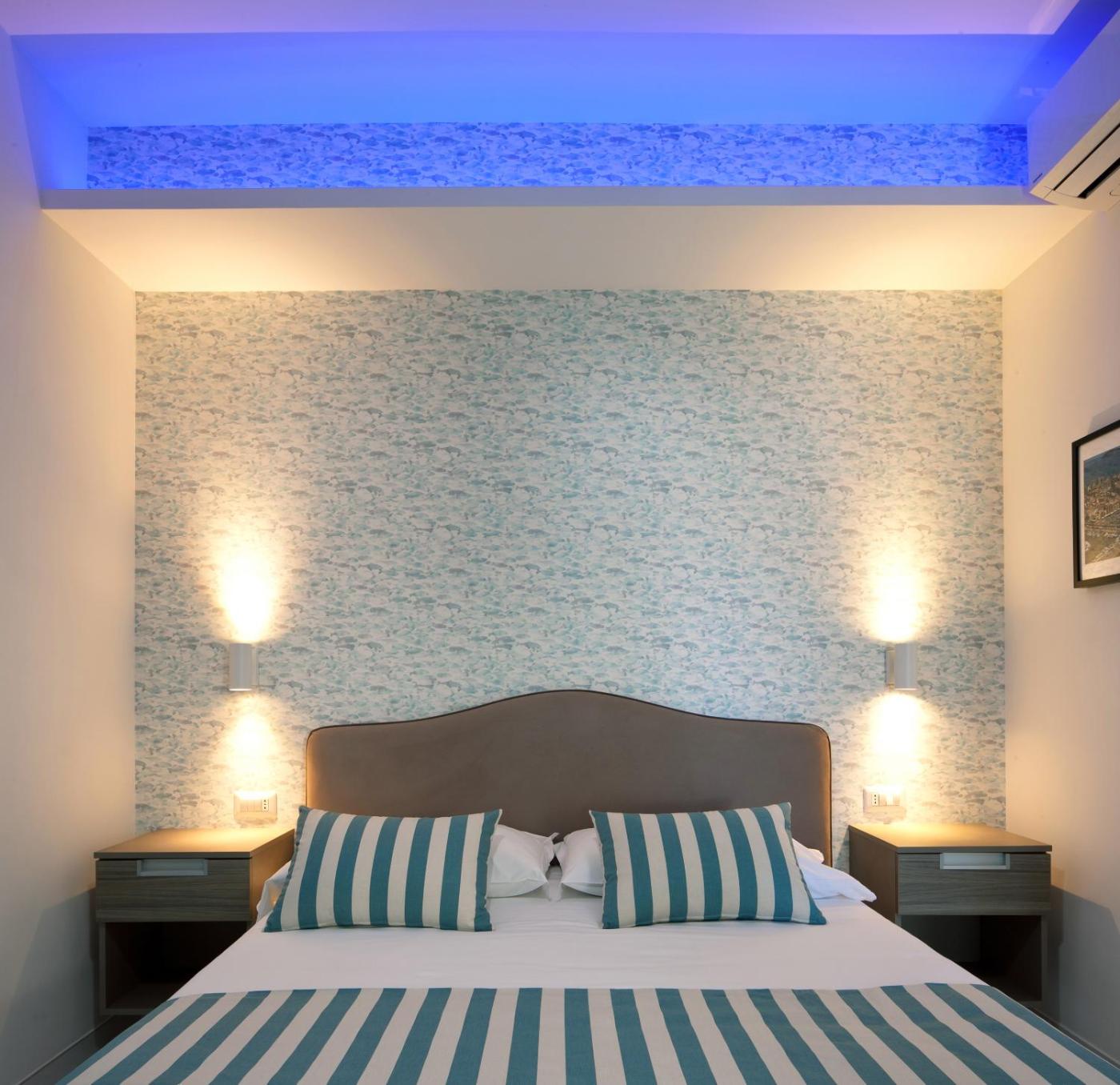 Camera Matrimoniale Standard. Camera matrimoniale dotata didi cortesia e bagno privato con doccia, asciugacapelli e bidet. Inoltre dispone di aria condizionata, TV a schermo piatto con canali satellitari, minibar,per la preparazione di tè e caffè, armadio e vista sul giardino. L’alloggio presenta 1 letto. ;